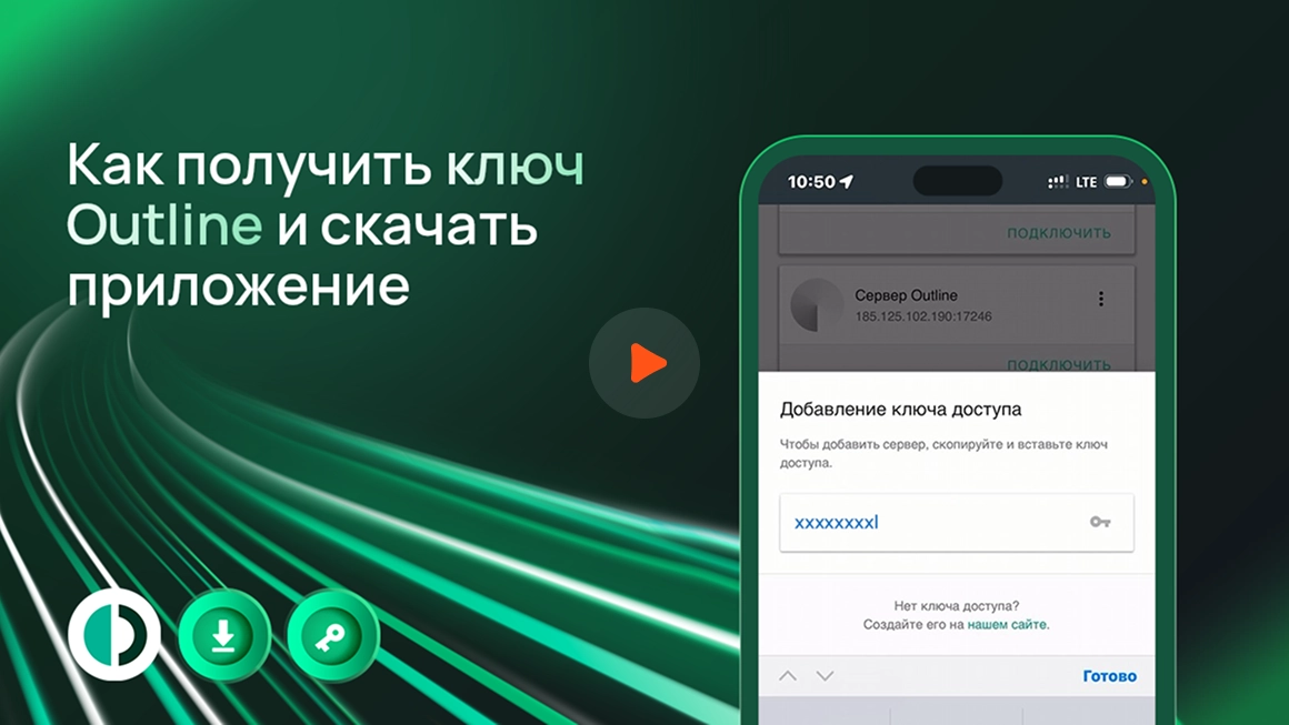 Ключ доступа Outline можно получить у администратора сервиса:
